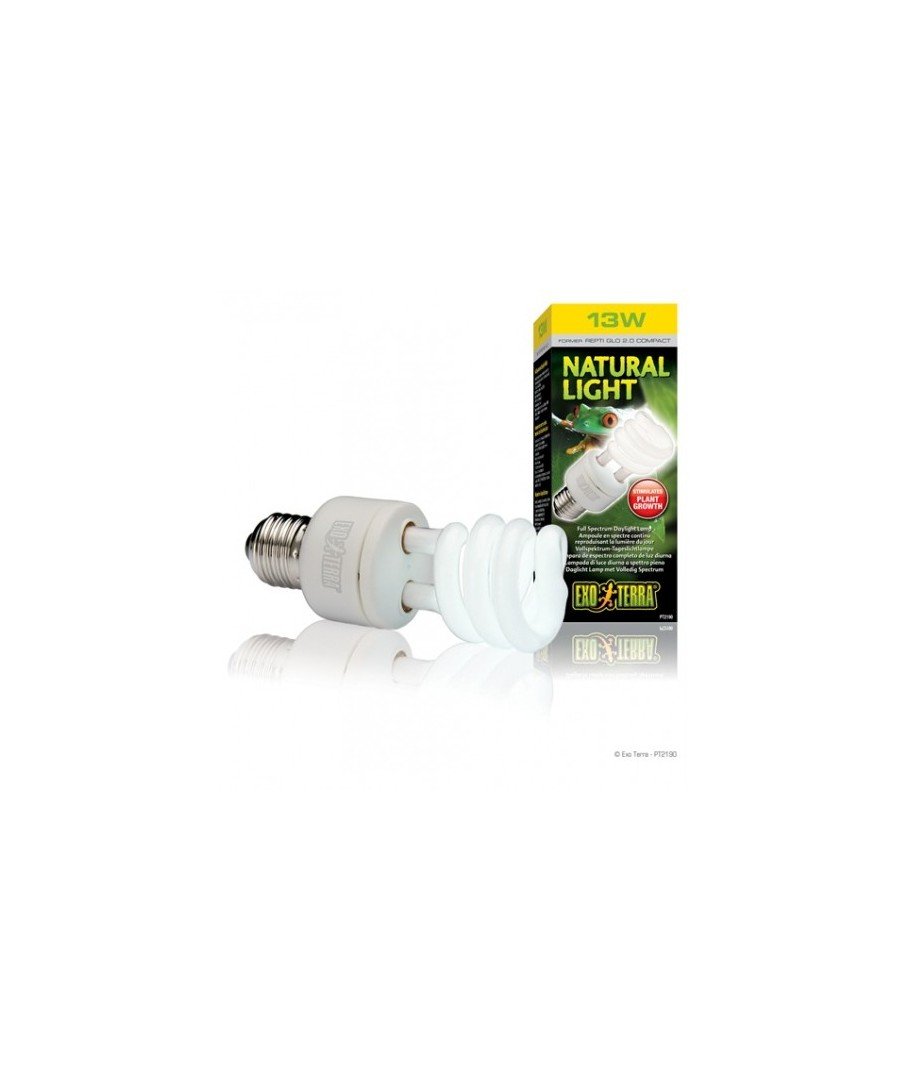 El Exo Terra Natural Light es una lámpara de espectro de luz diurna con una alta producción de luz visible y alto índice de reproducción cromática (CRI 98). Con su alta potencia de luz visible y la temperatura de color 6700 K, la lámpara para terrario Exo Terra Natural Light se recomienda como fuente general de luz para todos los tipos de terrarios.