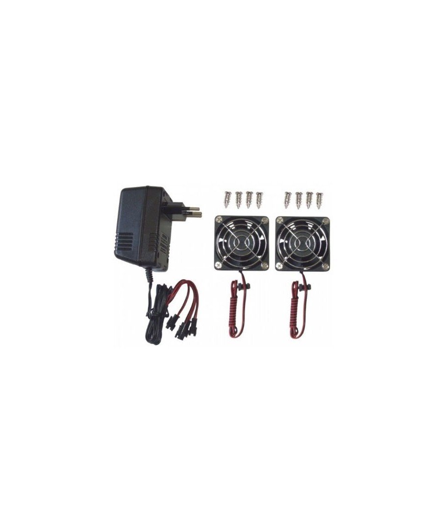 El kit consta de dos ventiladores y su transformador, se pueden añadir hasta cuatro ventiladores en total