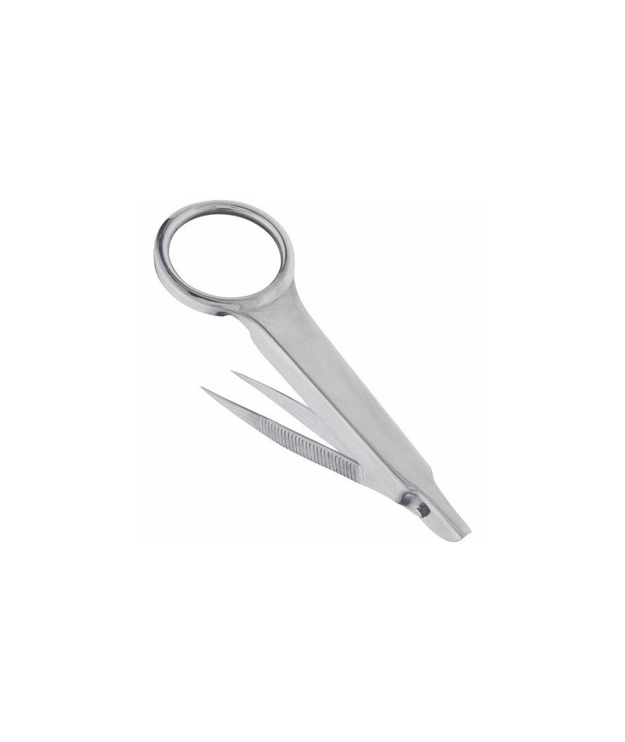 Pequeña pinza acabada en punta fina y con lupa incorporada, muy util para quitar restos de muda, retirar acaros, parasitos etc...