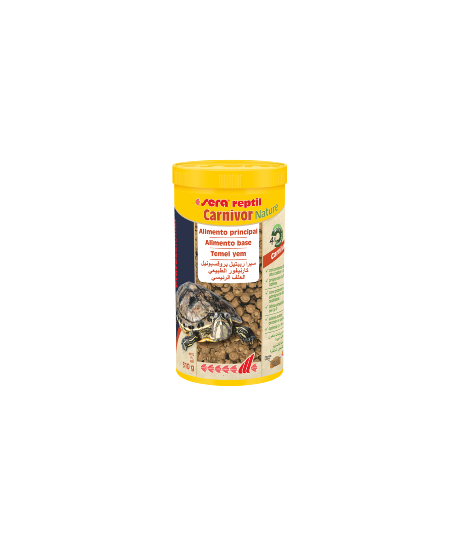 Este producto pertenece a la gama de productos "sera Nature" y no contiene ningún tipo de colorantes ni conservantes. Los colores de los diferentes alimentos son resultado de sus componentes naturales. Una alimentación variada con ingredientes similares a los existentes en la naturaleza es la mejor protección contra síntomas carenciales, a la vez que refuerza la salud y la vitalidad de los reptiles. Por este motivo, los alimentos Nature contienen ingredientes naturales, como por ejemplo espirulina, gammarus o hierbas y flores secadas conservando todas sus propiedades. Los iconos de la parte delantera del envase hacen referencia a estos componentes y a su porcentaje en el alimento.