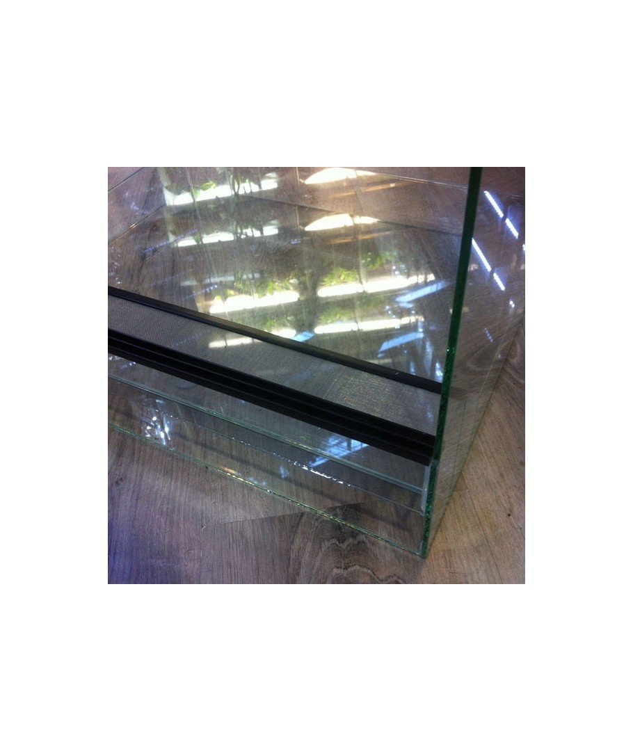 Terrario especial Dendrobates, interior con rampa y foso, el foso lleva el taladro para instalar desague si se desea, amplia malla inoxidable anti fugas, puerta panoramica