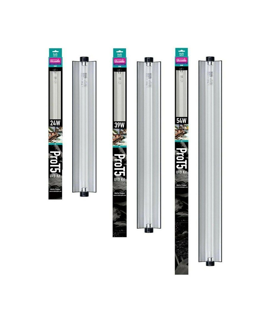 ProT5 es un kit de iluminación altamente adaptable con electrónica interna de alta calidad, un reflector altamente efectivo pero extraíble, cable de alimentación, kit de accesorios, cable de enlace GRATUITO y su elección de lámpara Arcadia Reptile HO-T5 UV-B.