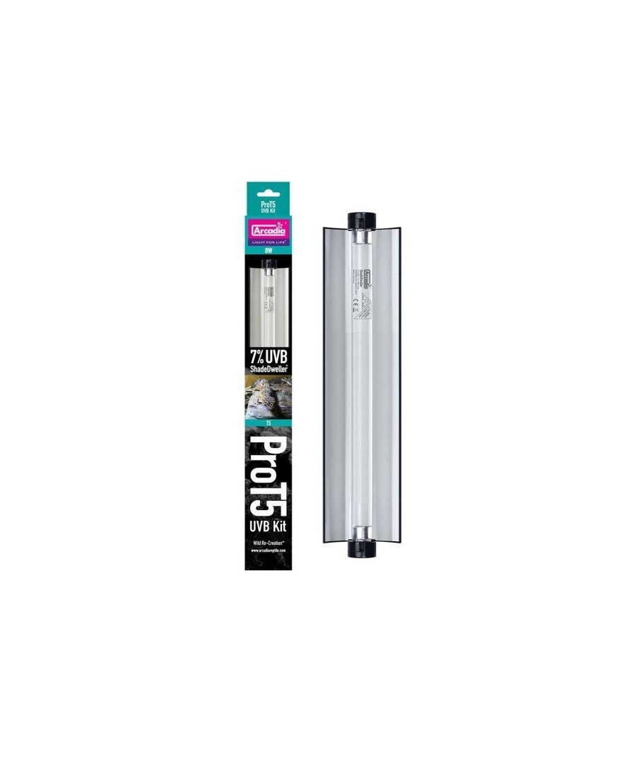 ProT5 es un kit de iluminación altamente adaptable con electrónica interna de alta calidad, un reflector altamente efectivo pero extraíble, cable de alimentación, kit de accesorios, cable de enlace GRATUITO y su elección de lámpara Arcadia Reptile HO-T5 UV-B.